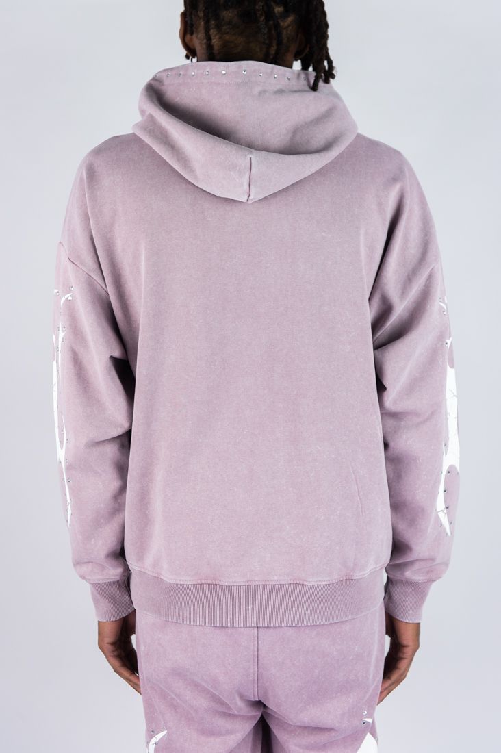 Flame Rhinestone Hoodie - Dusty Pink